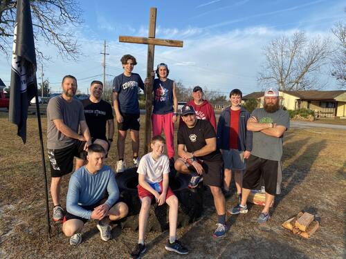 Rugged workout followed by a real world devotion by the fire.